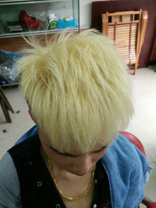 模特,发质,粗硬。发根3公分黑色。 漂过俩遍。